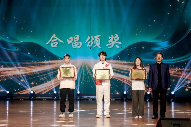 晚会中,学生合唱比赛作为重要节目精彩呈现,进入决赛的三个班级现场角逐金、银、铜奖,以饱满的热情和昂扬的歌声展现了理学学子的青春风采与团队精神。比赛结束后,校党委副书记张日向为获奖队伍颁奖。
