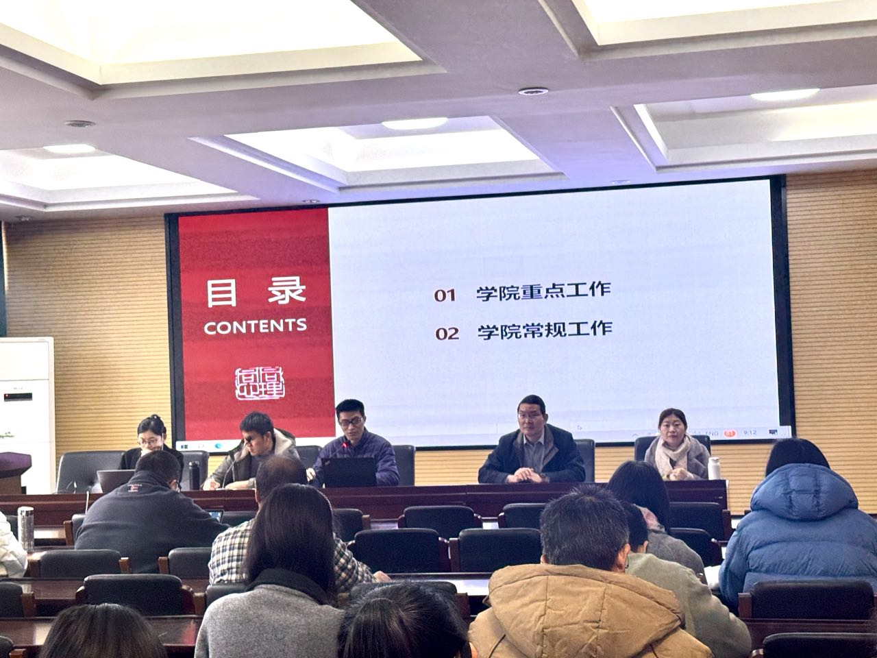 召开2026年首次全院大会暨教职工政治理论学习会,深入学习贯彻上级重要精神,全面部署新一年学院发展各项工作,明确发展方向与攻坚任务。会议由院长骆钧炎主持,学院党政班子成员及全体教职工参加。